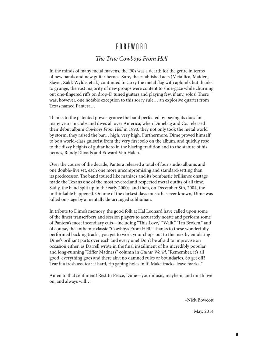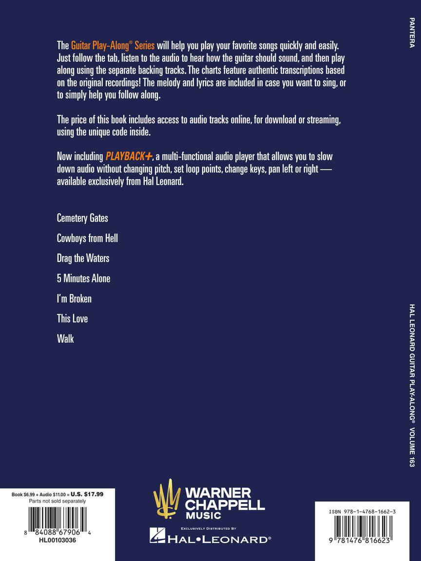 This volume includes 7 Pantera hits: Cemetery Gates • Cowboys from Hell • Drag the Waters • 5 Minutes Alone • I'm Broken • This Love • Walk.