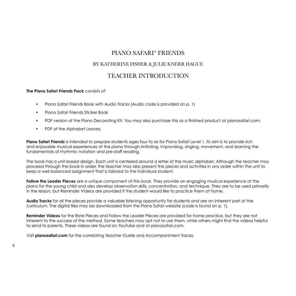 The Piano Safari Friends book is sold separately to teachers for reference (or if the book is misplaced).
