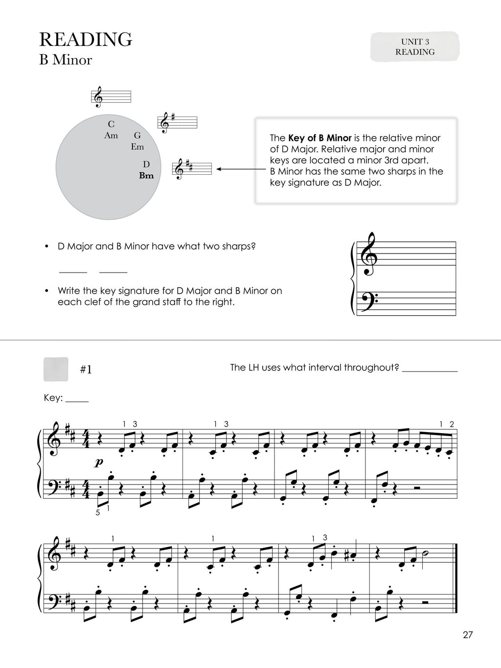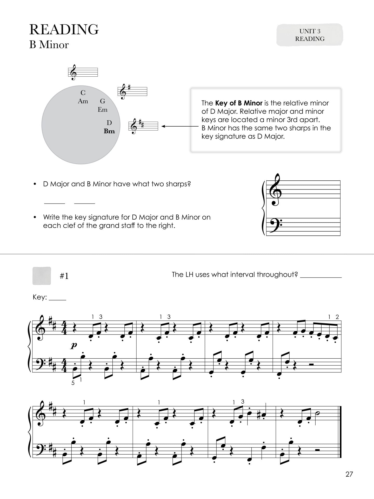 The Advancing Pianist: Sight Reading Book 1 contains sight reading exercises in major and minor keys up to two sharps and two flats.