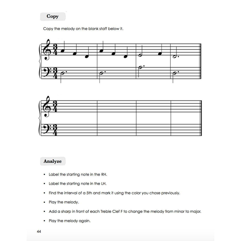 Students learn new concepts through their work in Repertoire Book 2, Technique Book 2, and the Sight Reading Cards by analysing and playing pieces and exercises. In the Theory Book 2, additional modes of learning are utilized, which include: