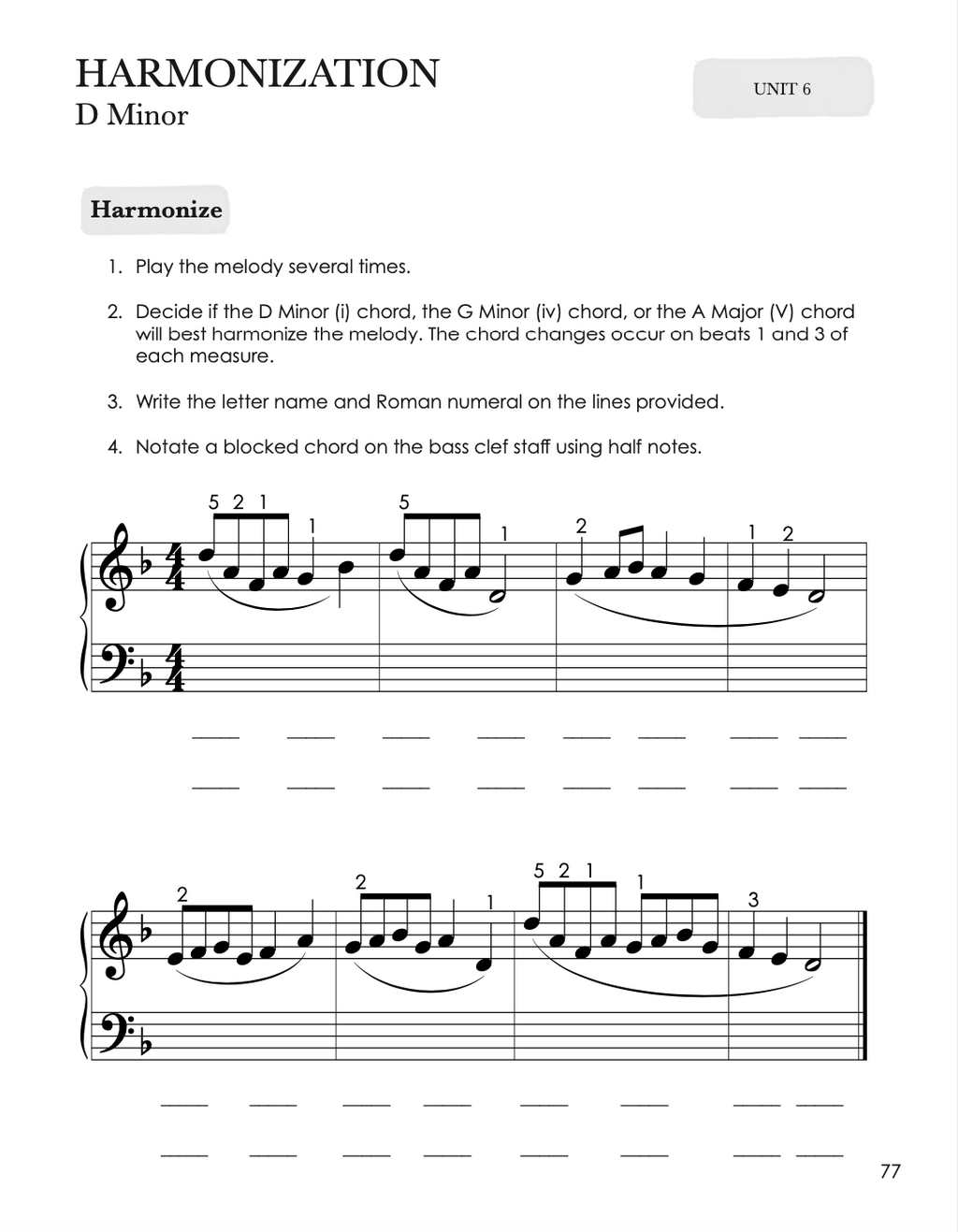 - Letter name and Roman numeral analysis