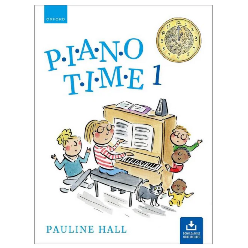 Piano Time 1 starts at the very beginning, with simple five-finger tunes for hands separately and together, many with duet parts. It gradually adds more notes and techniques to cover sharps and flats, simple scales and keys, and a range of dynamics and symbols. Third Edition.