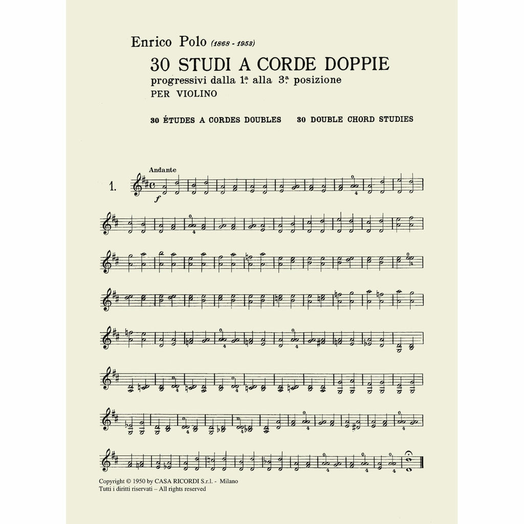 Enrico Polo (1868-1953) was an Italian violinist, composer and pedagogue. His Thirty Double Chord Studies, also known as Double Stop Studies, contains progressive exercises and etudes from the first to the third position. They are beloved by music teachers around the world, and remain a long-standing staple in the technical repertoire for violin.