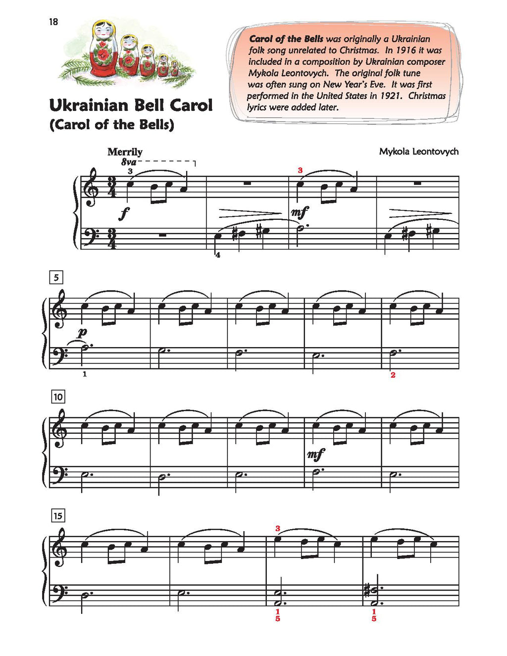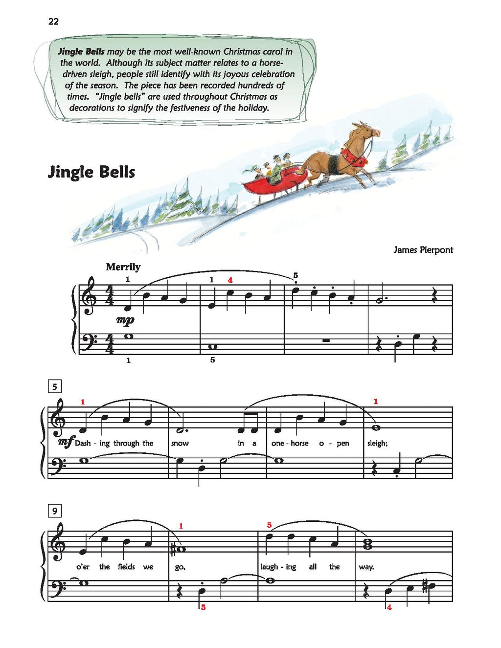 Familiar motivational pieces for the holiday season using the same concepts introduced in the corresponding Lesson Book. Some pieces contain teacher duet accompaniments for an enhanced musical experience. Titles: Arabian Dance (from The Nutcracker Suite) * Bring a Torch, Jeannette, Isabella * Carol of the Bells * Ding, Dong Merrily on High * It Came Upon the Midnight Clear * Jingle Bells * The Little Drummer Boy * O Come, All Ye Faithful * Over the River and Through the Woods * Up on the Housetop * We Wish You a Merry Christmas. 24 pages.
