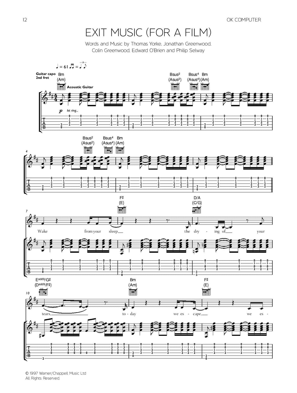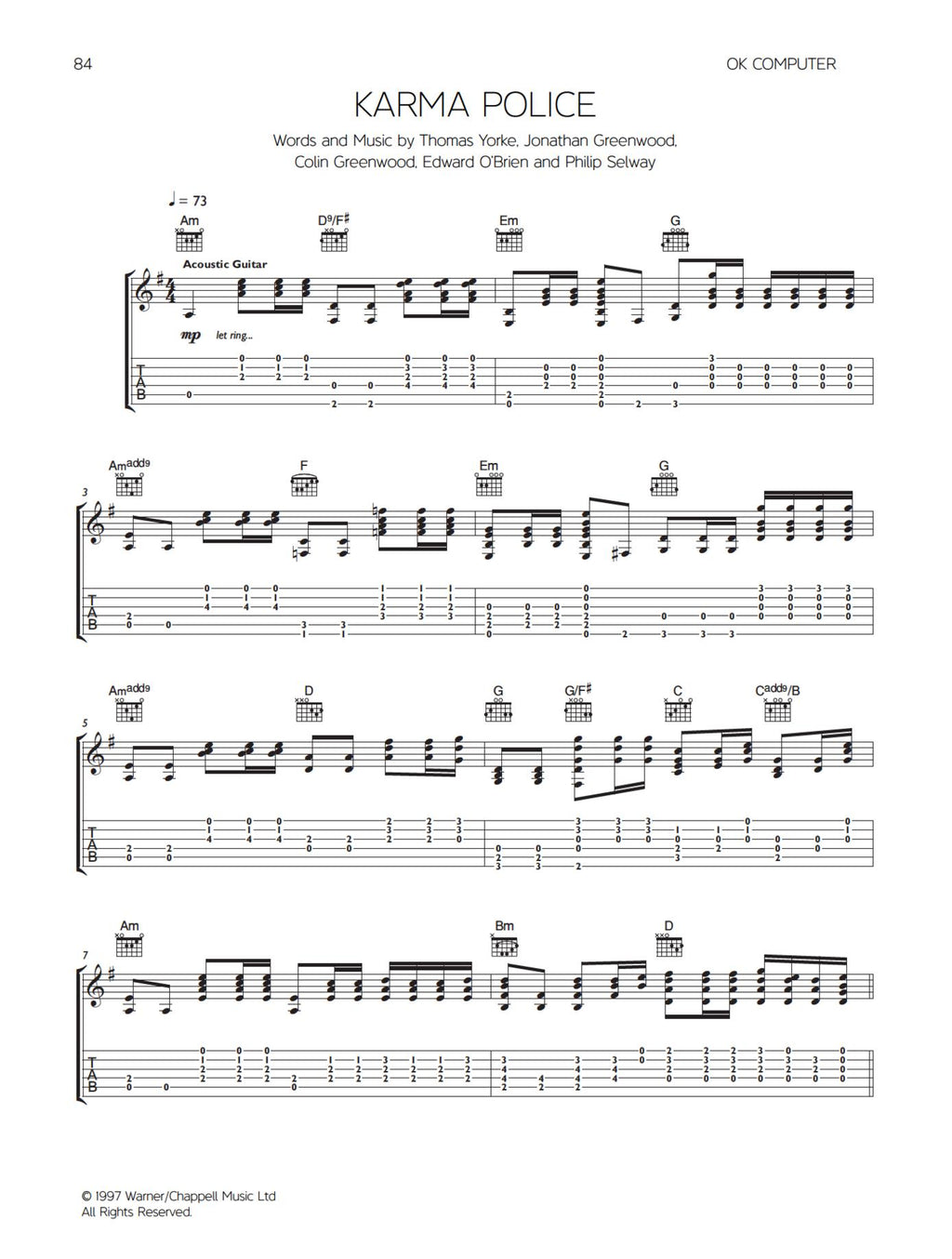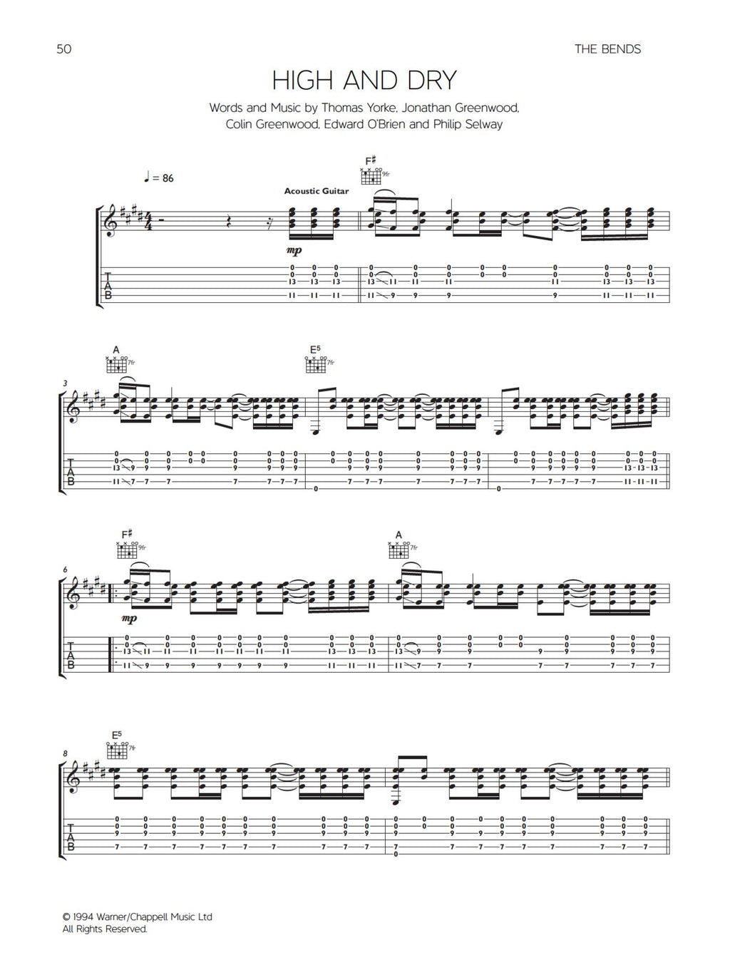 Put together for the first time in one book, the artist approved Radiohead: The Acoustic Guitar Songbook contains over 20 of the greatest guitar songs from Radiohead. Spanning their entire career to date, each song is transcribed for acoustic guitar in standard notation and tab, with melody line and chord boxes.