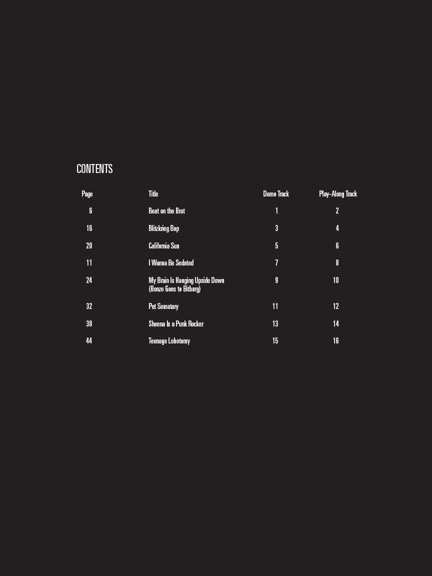 8 songs: Beat on the Brat • Blitzkrieg Bop • California Sun • I Wanna Be Sedated • My Brain Is Hanging Upside down (Bonzo Goes to Bitburg) • Pet Sematary • Sheena Is a Punk Rocker • Teenage Lobotomy.