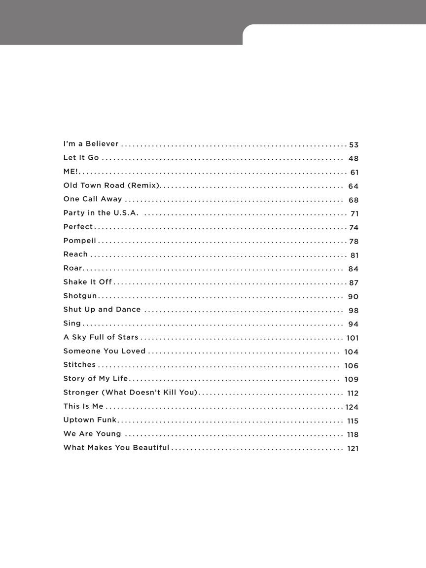 40 songs popular with kids and teens in easy-to-play arrangements for piano, presented with background notes and performance tips for every song and lyrics. Includes: Adore You • Best Day of My Life • Can't Stop the Feeling! • Cups (When I'm Gone) • Fight Song • Happy • I'm a Believer • Let It Go • Old Town Road (Remix) • Roar • Stitches • This Is Me • and more.