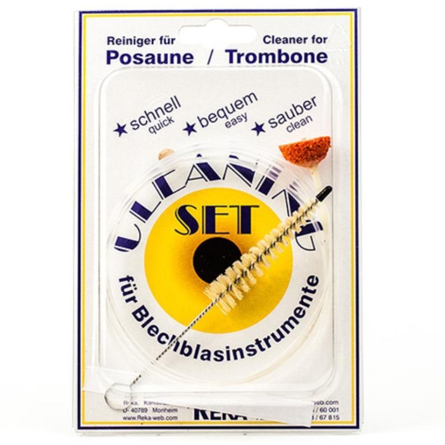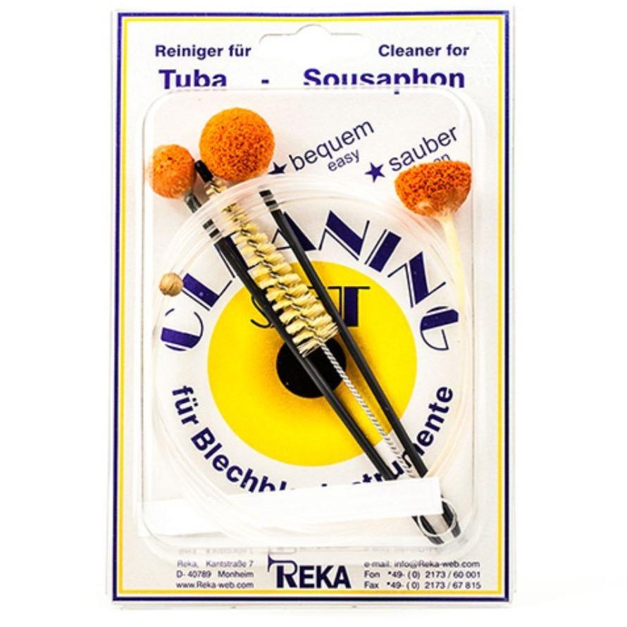 The patented REKA cleaning sets contain tools which are able to reach easily into every nook and cranny of the instrument’s interior – even into smallest pipe bends. The cleaning element consists of a highly flexible cord. Attached to it is an active cleaning rubber sponge which lifts out the sediment and absorbs the acids contained in the saliva.