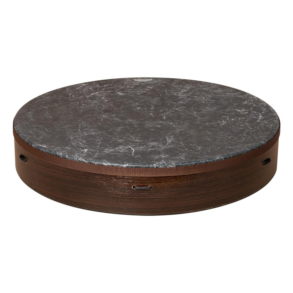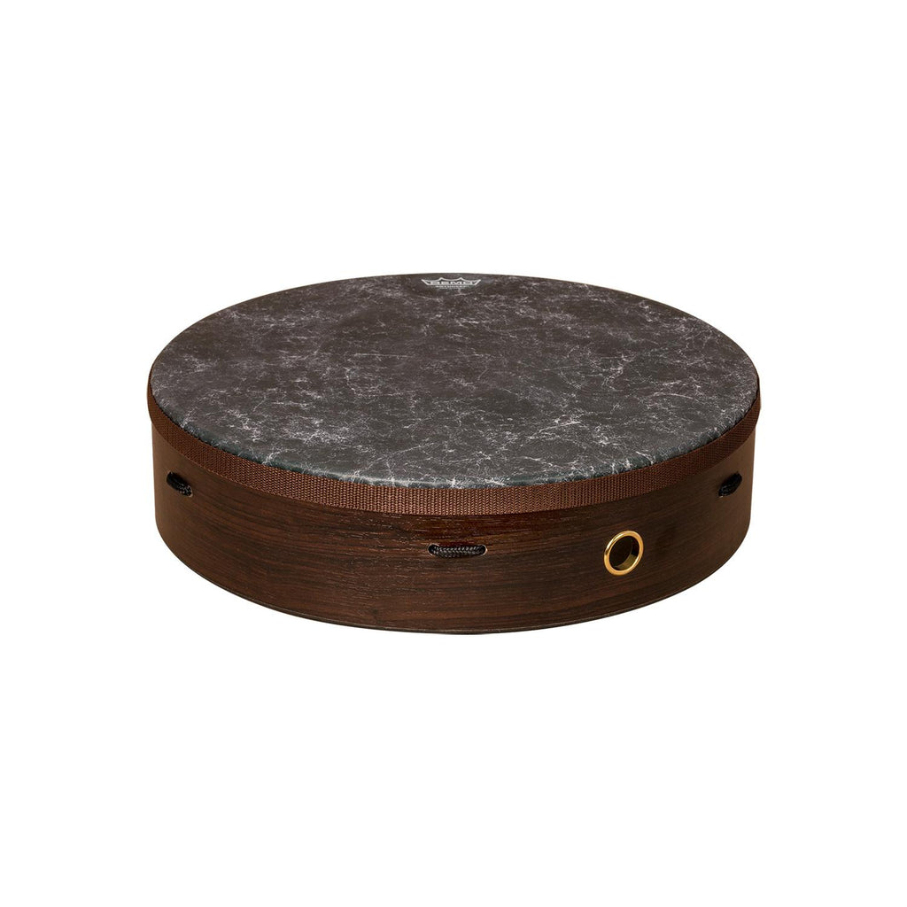 Deep shell Irish Bodhrán. 16” or 22" x 4” Fiberskyn® black graphic drum head. Brown finish.