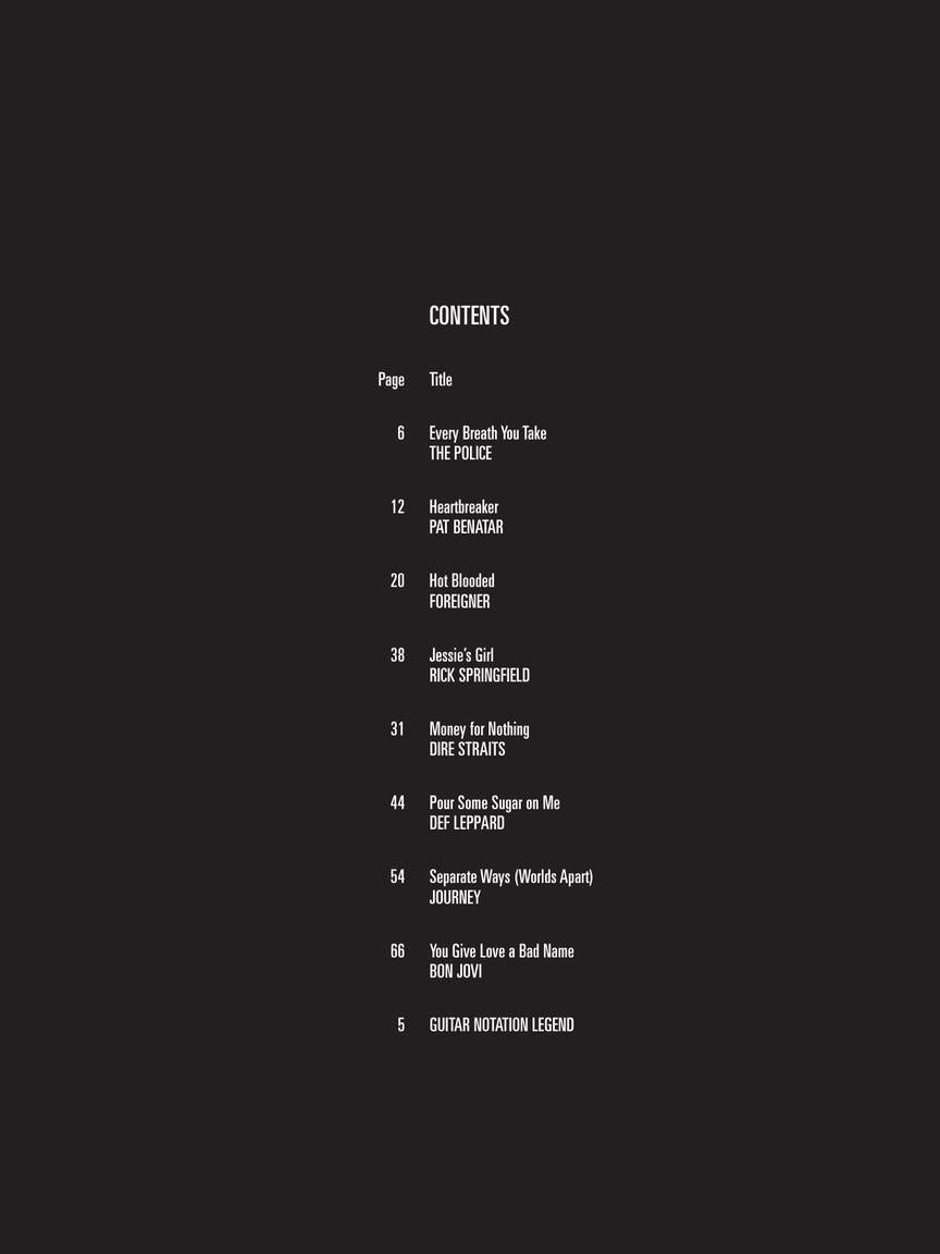 8 songs: Every Breath You Take • Heartbreaker • Hot Blooded • Jessie's Girl • Money for Nothing • Pour Some Sugar on Me • Separate Ways (Worlds Apart) • You Give Love a Bad Name.