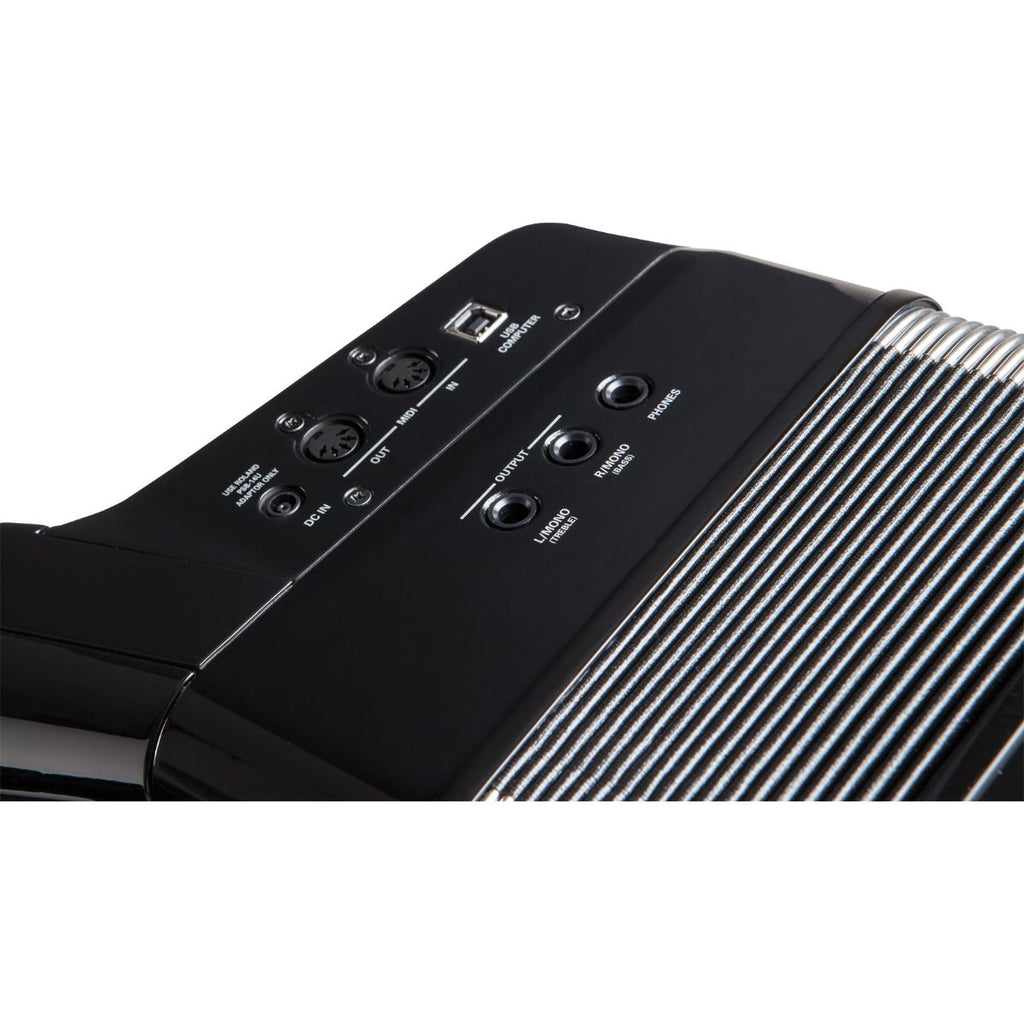 The handy MP3/WAV song player lets you play along with pre-recorded musical tracks for practice and live backing via optional USB memory. Just plug your USB stick into the convenient front-panel USB MEMORY port, then select and play songs with dedicated, easy-to-reach controls. With the touch of a button, your accordion performances can be recorded directly to USB memory as well, perfect for archiving, evaluation, and education. USB memory also offers a convenient way to save/load customized accordion sets and install new sounds and software updates. The USB COMPUTER port on the side panel opens up the world of modern music production to accordionists, providing the ability to easily connect the FR-8xb to a computer and use it with popular MIDI software as a unique, expressive controller and a powerful sound engine.