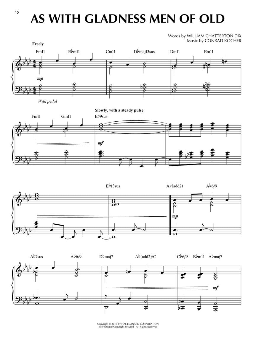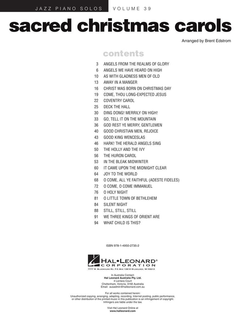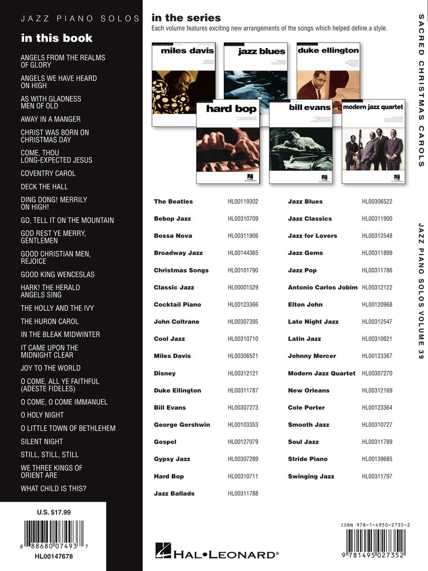 27 timeless Christmas carols in the sacred tradition are presented in jazzy piano solo arrangements including chord names.