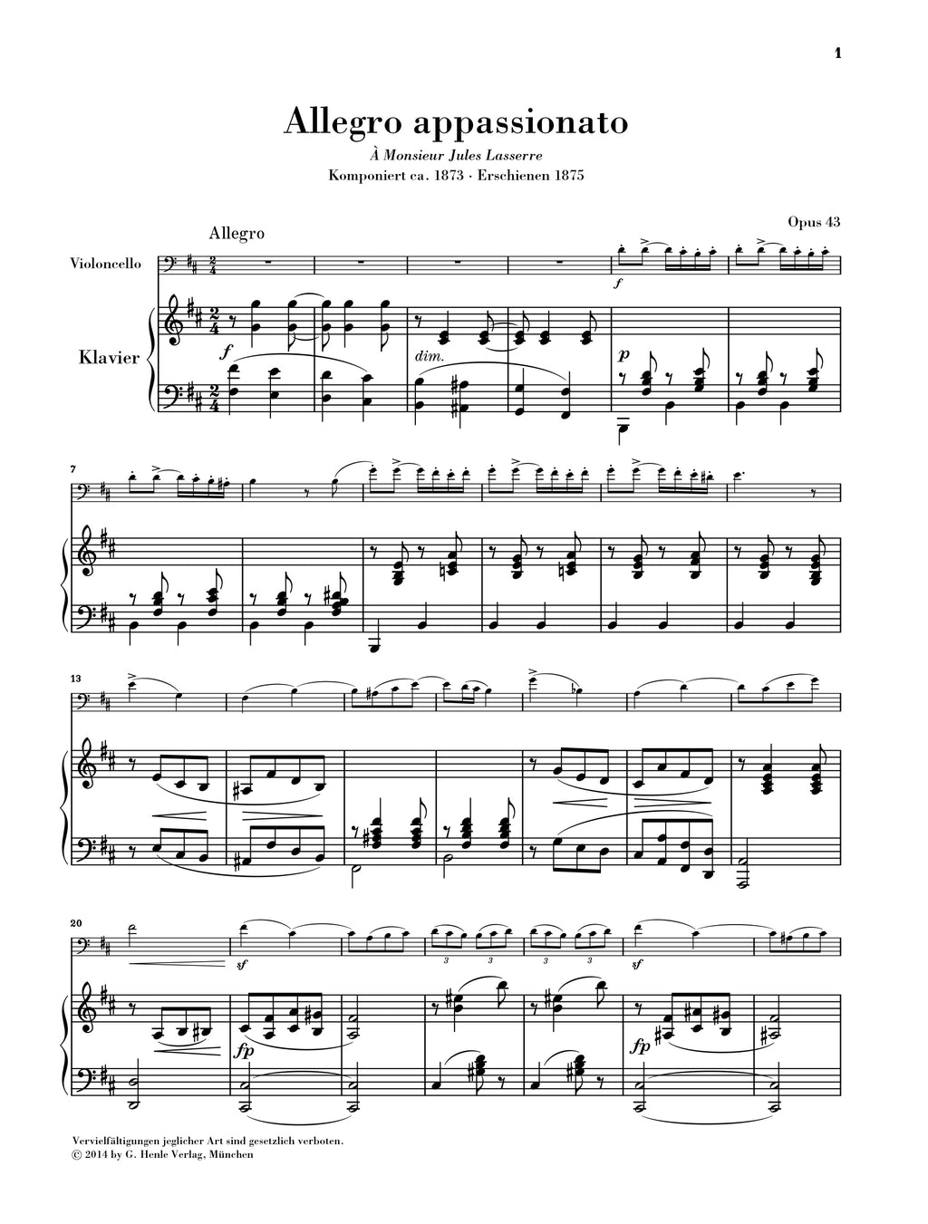 At the beginning of the 1870s, Saint-Saëns displayed a particular partiality for the violoncello. He composed his first cello sonata in December 1872, immediately after having completed the first cello concerto. It was presumably directly after this that he wrote the “Allegro appassionato” for Cello and Piano op. 43 that also appeared in a version for orchestra three years later.