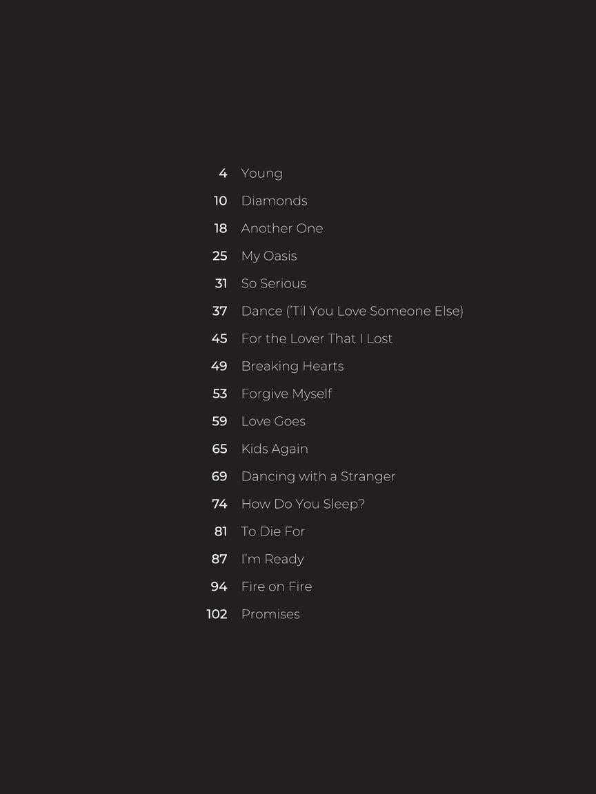 17 songs in arrangements for piano, voice and guitar from Smith's third studio album released in 2020. Includes the title track plus: Dancing with a Stranger • Diamonds • Fire on Fire • How Do You Sleep? • I'm Ready • Kids Again • My Oasis • Promises • To Die For • and more.
