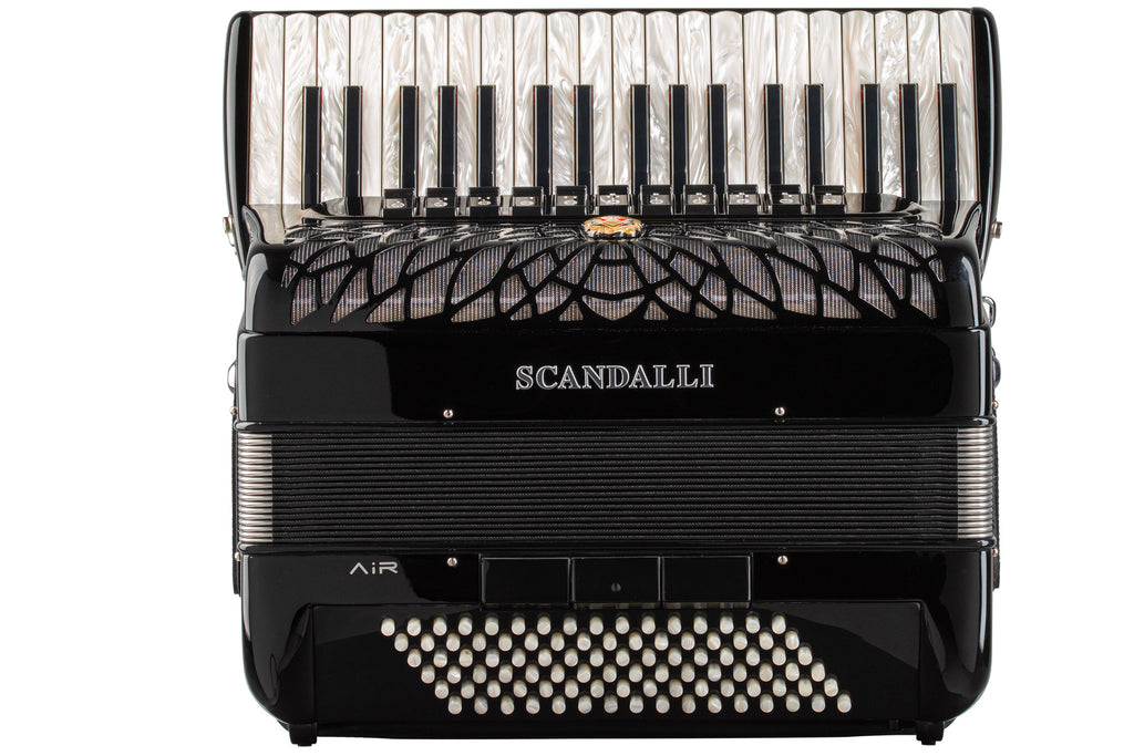 The models of this line are a step forward, compact, light, dynamic and ergonomic. The extremely compact and light size of the Air accordions is due to many technical solutions. In all piano version models the width of the keys is 19 mm instead of 20 mm as in the traditional line. The Air Line is the outcome of extensive development; in which the ancient and unmistakable Scandalli sound has been combined with new innovative, aggressive and modern design.