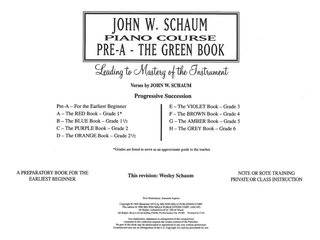 A time-honored tradition just got better! The John W. Schaum Piano Course has been newly revised with 100 percent new engravings and typesetting, color highlighting for concept emphasis, updated song titles and lyrics, and full-color illustrations. This is the Primer level.