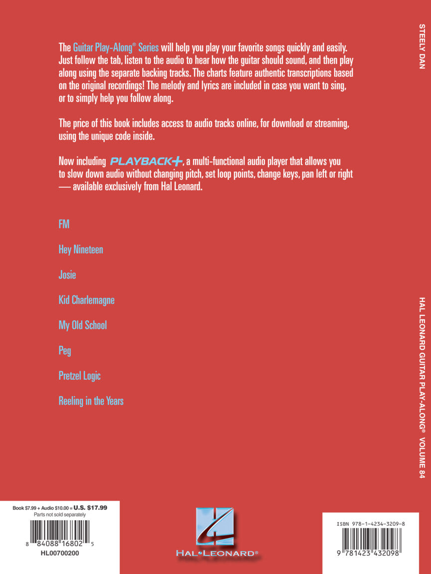 8 songs: FM • Hey Nineteen • Josie • Kid Charlemagne • My Old School • Peg • Pretzel Logic • Reeling in the Years. Audio is accessed online using the unique code inside the book and can be streamed or downloaded.