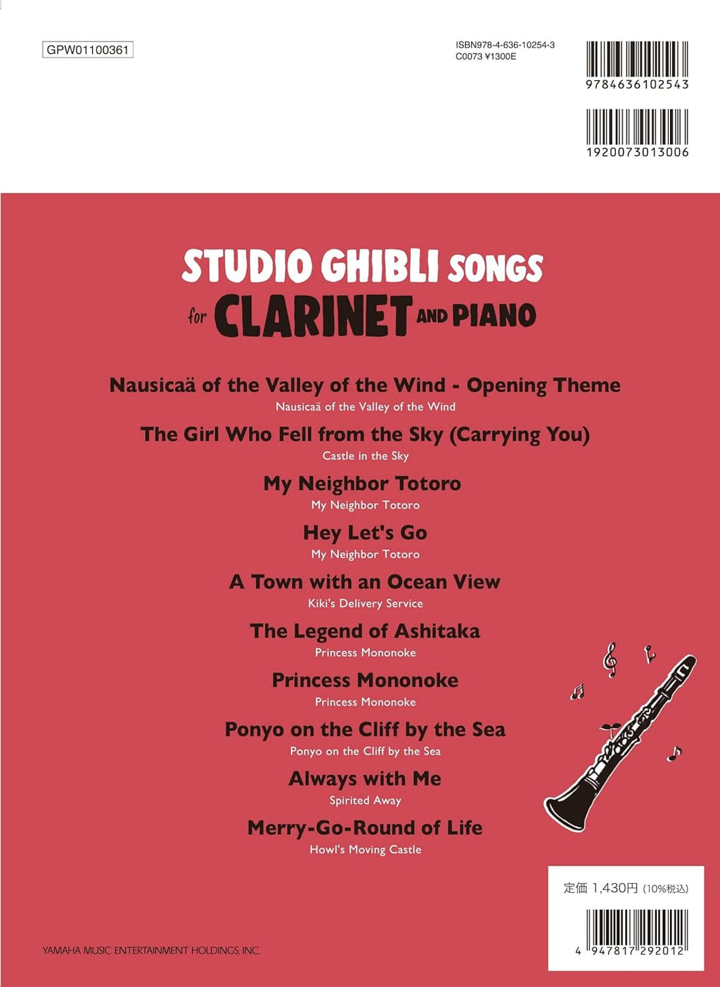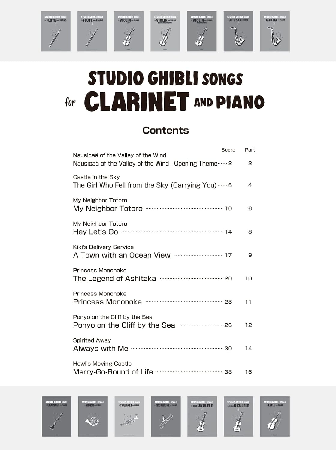 Music from the Studio Ghibli films by Hayao Miyazaki arranged for clarinet (solo) and piano (accompaniment).