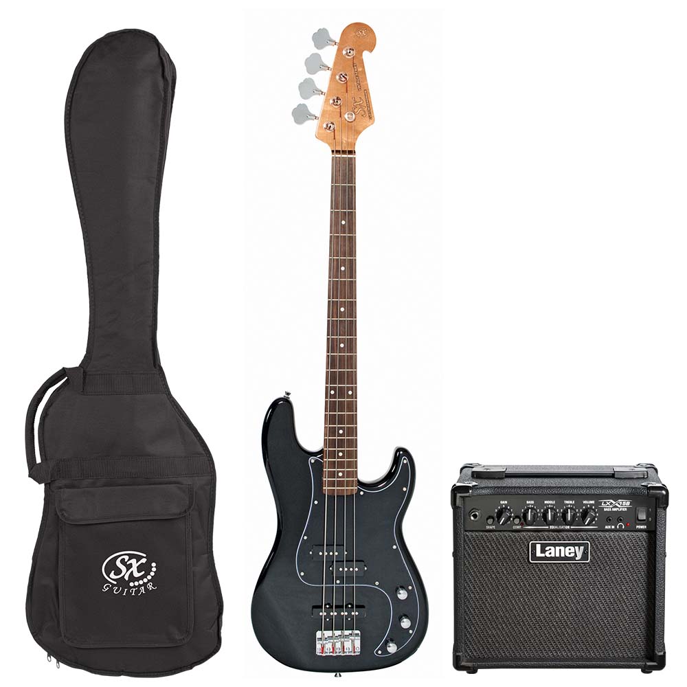 SX vintage-style PJ bass and Laney LX15B 15-watt amplifier with 2 x 5" speaker. Plus: 7mm padded gig bag and UPlay Guitar Guide with free online lessons.