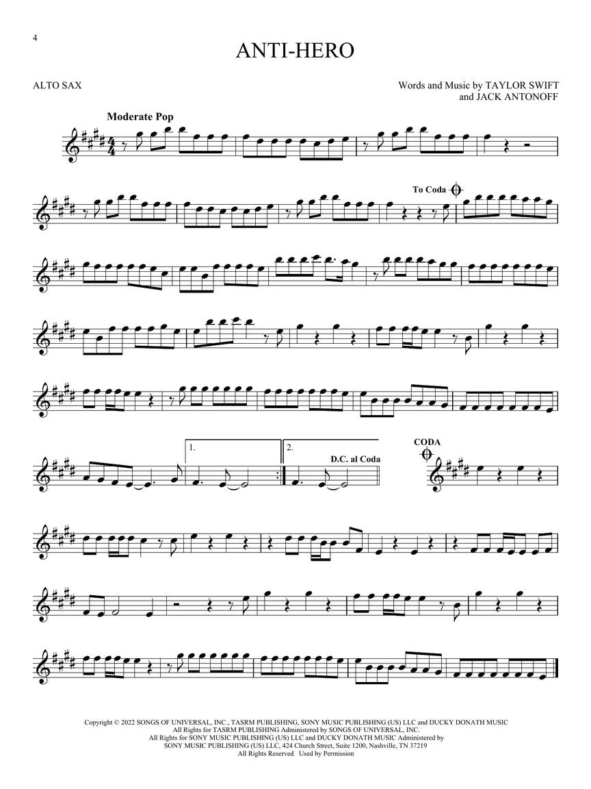 This collection lets instrumentalists play 33 of Taylor Swift's most popular songs, including: All Too Well • Anti-Hero • Blank Space • Cardigan • Fearless • Fifteen • Lavender Haze • Love Story • Mean • The 1 • Picture to Burn • Shake It Off • Speak Now • Teardrops on My Guitar • 22 • We Are Never Ever Getting Back Together • Willow • You Belong with Me • You Need to Calm Down • and more.