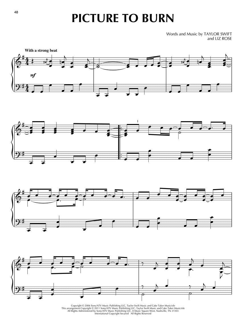 Easy arrangements of 15 of Taylor's biggest hits: Back to December • Fearless • Fifteen • Love Story • Mean • Mine • Our Song • Picture to Burn • Should've Said No • Sparks Fly • Speak Now • The Story of Us • Teardrops on My Guitar • White Horse • You Belong with Me.