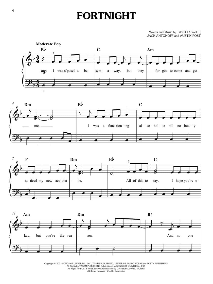 You've memorised all the songs from the double album, now it's time to play them for yourself! Our matching folio to The Tortured Poets Department: The Anthology features all 31 tracks meticulously arranged for piano and voice with guitar chord frames. Dive into the emotional depth of Swift's music and play along with your favourite tracks from “Fortnight” to “The Manuscript,” to “So Long, London” to “So High School,” and all the others. Immerse yourself in the storytelling prowess of Taylor Swift and bring her songs to life with your own unique voice and talent!