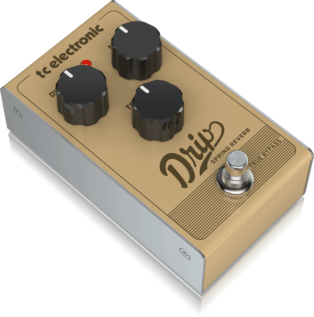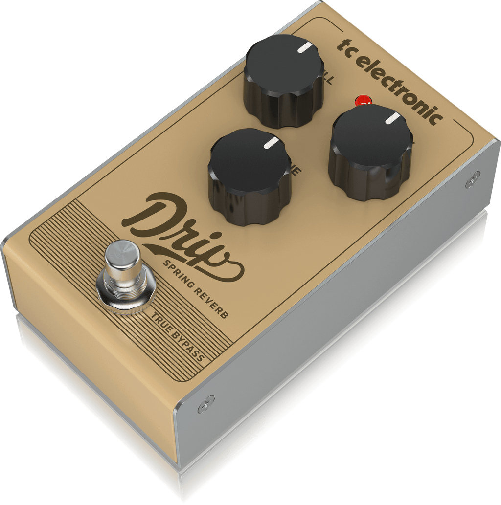 reverb. An homage to one of music’s most recognizable reverb effects, DRIP SPRING REVERB instantly takes your tone back to the good old days of amp reverb, to the iconic California surf scene and the countless classic blues recordings that made history. Not to mention instrumental bands such as The Shadows and The Ventures, who built their careers on those classic reverberated guitar tones. Spring reverb was so ubiquitous on classic recordings that even though it’s hardly a natural sounding reverberation, it has become a quintessential part of sound of the electric guitar.