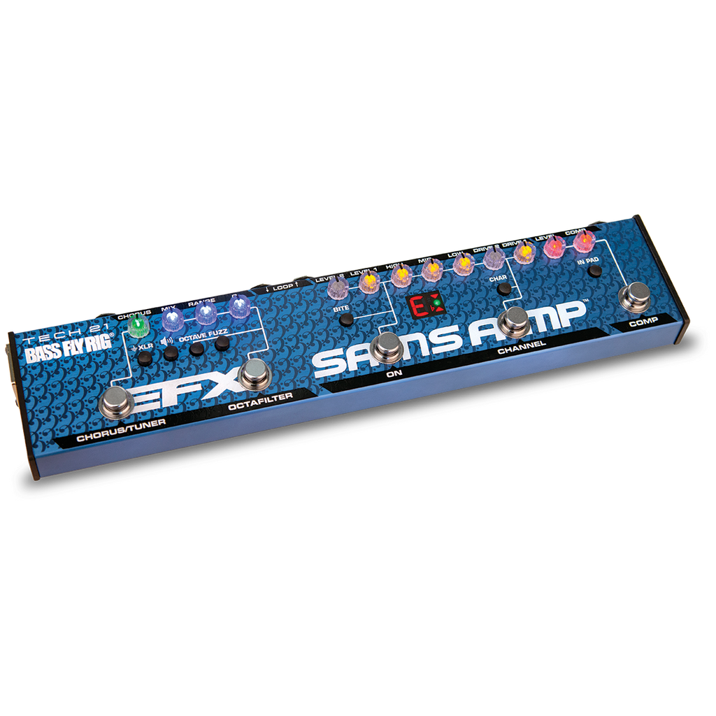 The original Fly Rig, introduced in 2014, was a true game-changer for players in all categories, from touring pros to bedroom hobbyists, and expanded into a series. Each Tech 21 Fly Rig is much more than a pedalboard. In a single pedal. And no board. Less than 13” long and weighing just over 20 oz., each sleek, compact unit embodies an entire rig. At each core, is the all-analog SansAmp, which makes it possible to go direct to a PA or studio mixers and computer interfaces. For effects, you have the essentials and the ability to add some fun stuff, too. What you don’t have are crackling patch cables, dying batteries or ground loops. No stinkin’ van, heavy flight cases, cable spaghetti, and no dead weight. No stressing over what to pack and agonizing over what to leave behind. No dreading cheesy backline loaners and overheating at the mere thought of your touring rig going down. With a Tech 21 Fly Rig, you can relax. For fly gigs across the globe, jamming at the local hang, and last minute recording sessions, you’ll be the first one ready to go. Just pop your Fly Rig into your guitar case or backpack and head for the door.