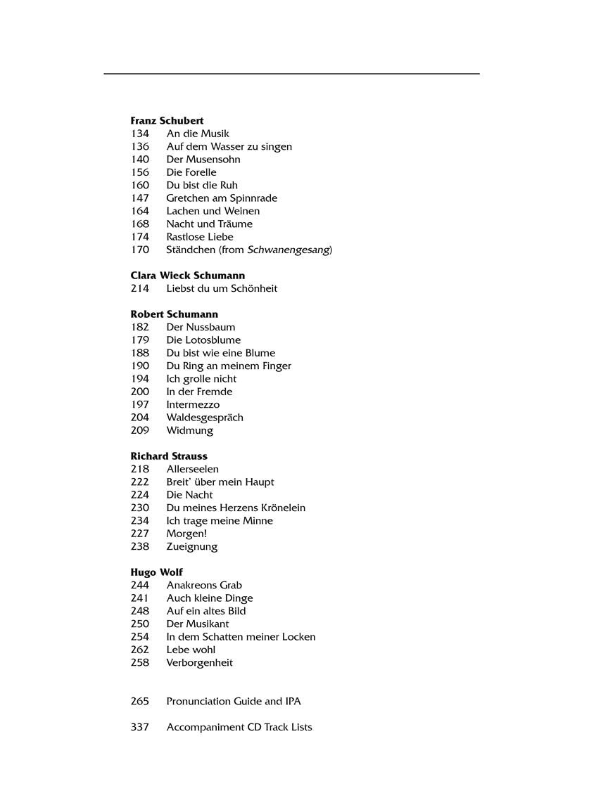 The comprehensive Complete Package includes invaluable recorded diction lessons, IPA and word-for-word translations, along with tastefully played accompaniment tracks.