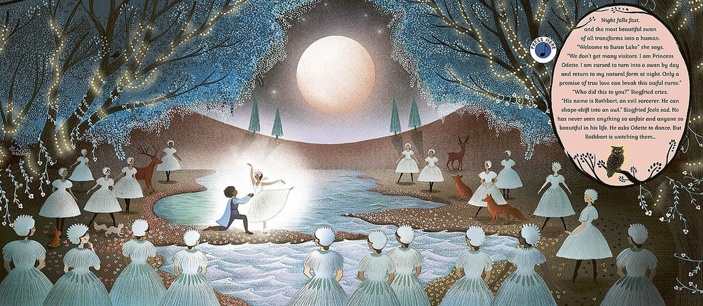 Discover the spellbinding magic of Swan Lake in this musical retelling of the ballet - push the button on each beautiful scene to hear the vivid sound of an orchestra playing from Tchaikovsky's score.