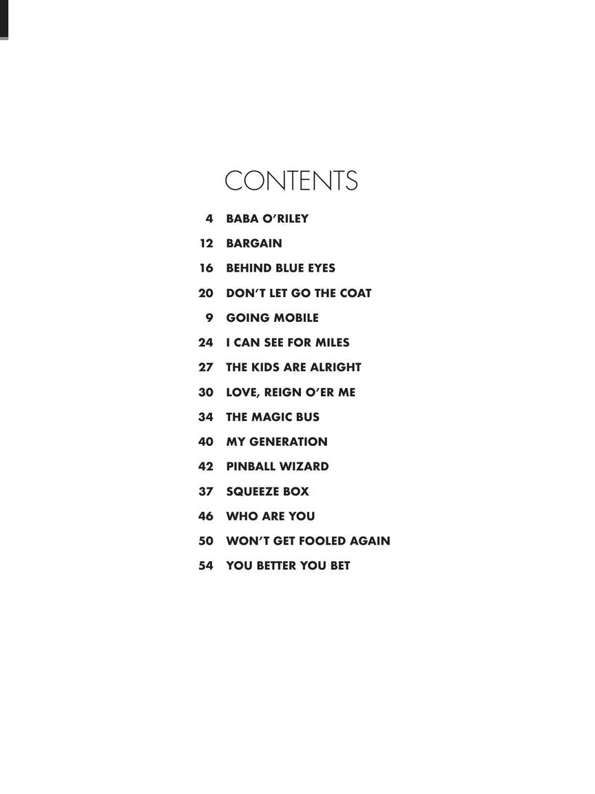 15 of the Who's best are presented in classical piano solo arrangements by Phillip Keveren.
