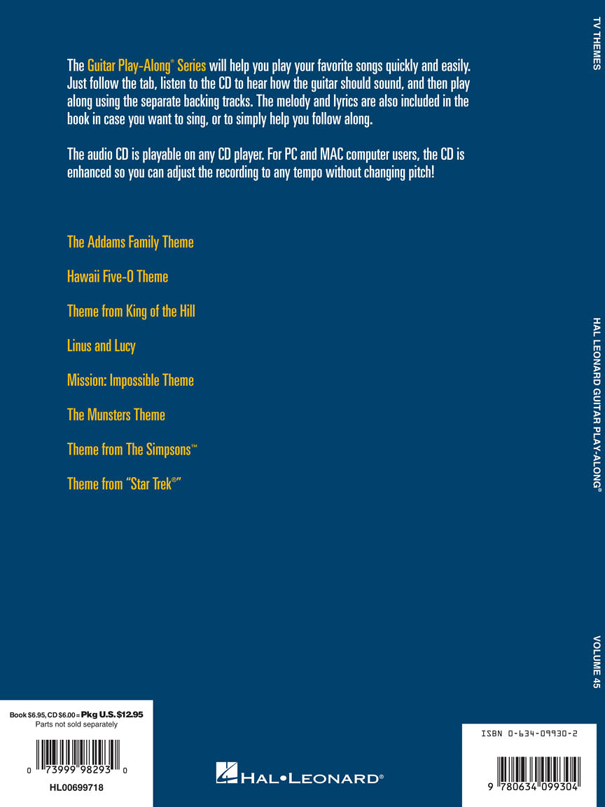 The Guitar Play-Along Series will help you play your favorite songs quickly and easily! Just follow the tab, listen to the CD to hear how the guitar should sound, and then play along using the separate backing tracks. The melody and lyrics are also included in the book in case you want to sing, or to simply help you follow along. The audio CD is playable on any CD player. For PC and Mac computer users, the CD is enhanced so you can adjust the recording to any tempo without changing pitch!