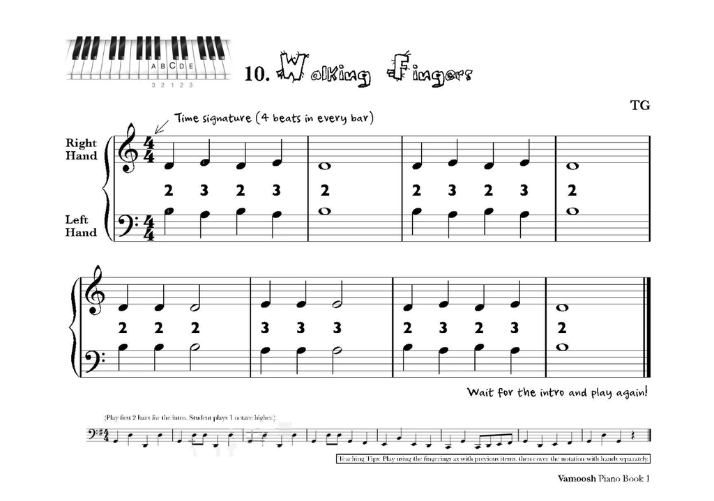 Easy to use beginner book for Piano or Keyboard. 34 engaging and varied pieces that start with hands together using simple finger charts. Note-reading is gently introduced with chances to improvise. All pieces include teacher accompaniments plus backing tracks that are available online. An excellent starter for young pianists.