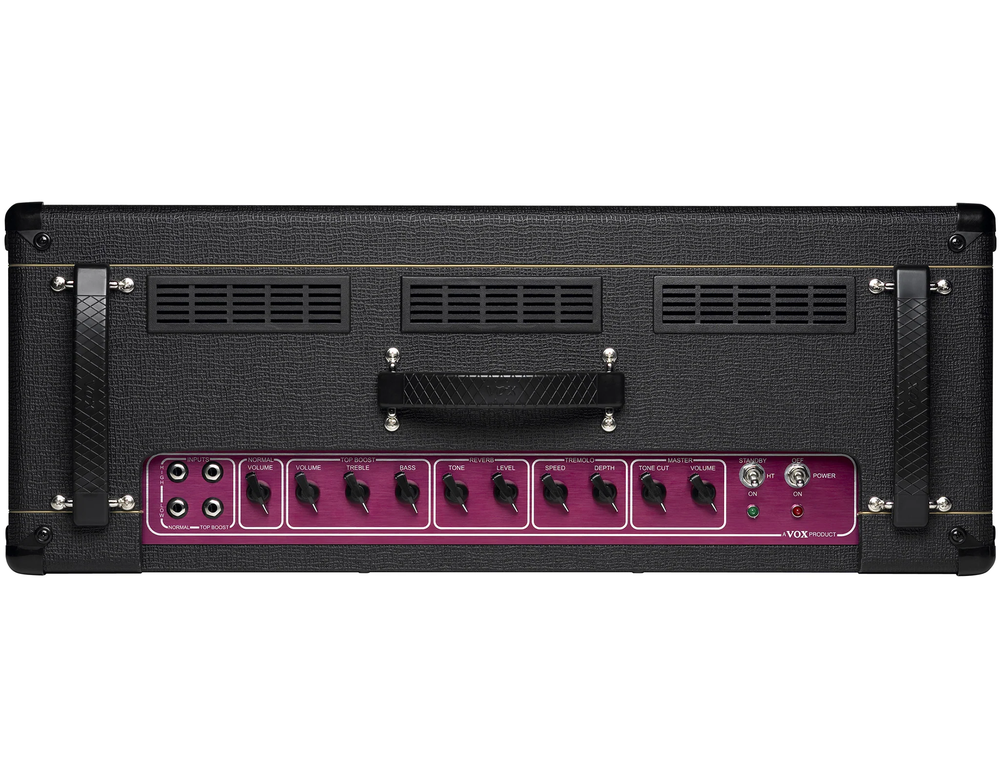 Controls: Master Volume, Master Tone Cut, Normal Volume, Top Boost Volume, Top Boost Bass, Top Boost Treble, Reverb Tone, Reverb Level, Tremolo Speed, Tremolo Depth