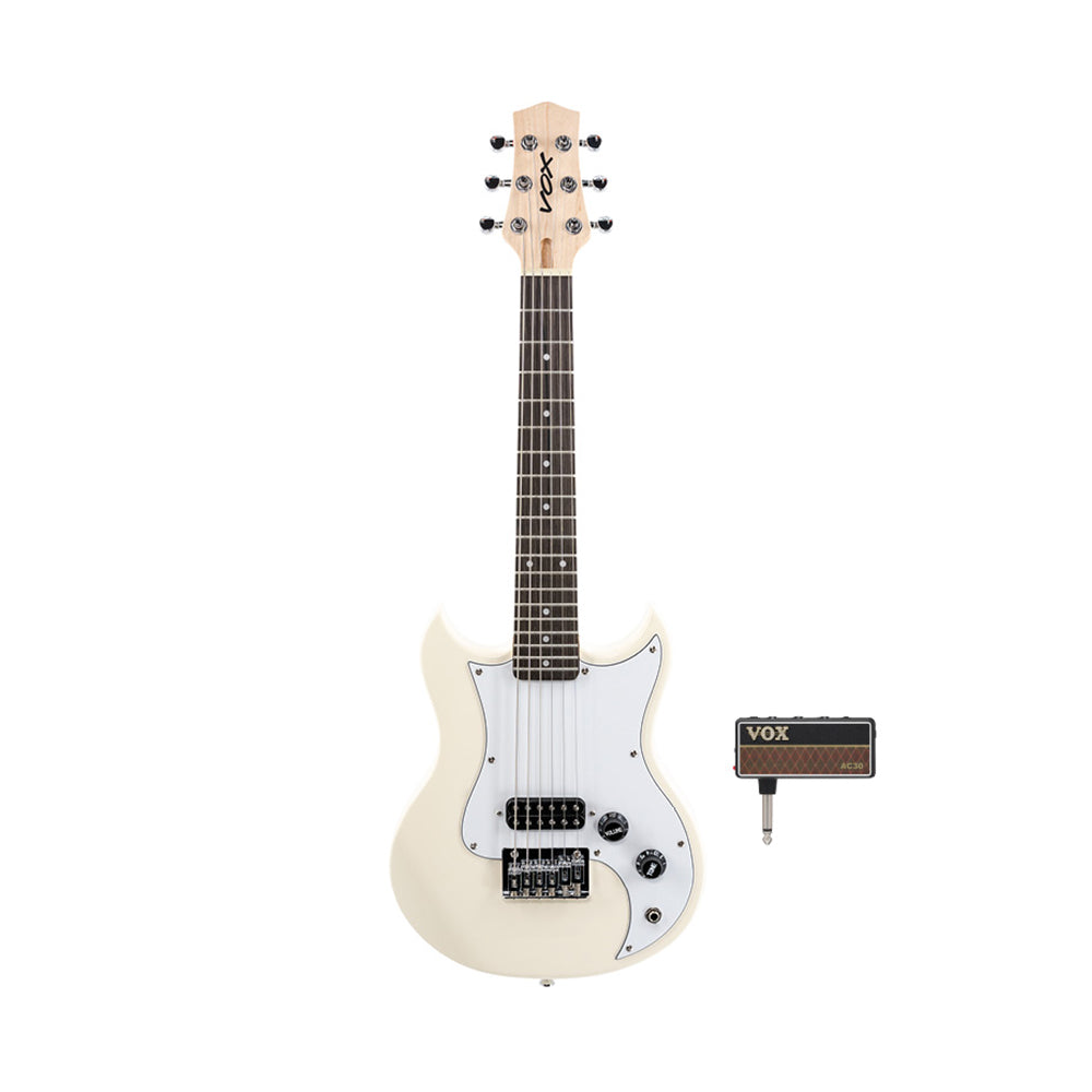 Play your favourite riffs at the park, the subway, or the tour bus! The new VOX SDC-1 mini provides the sound and feel of a full sized electric guitar in a compact format. Play with the same tuning as a standard guitar but on a 479mm short scale format. It also features high gear ratio tuning heads especially designed for short scale guitars to allow easy and accurate tuning. Black finish, carry bag included.