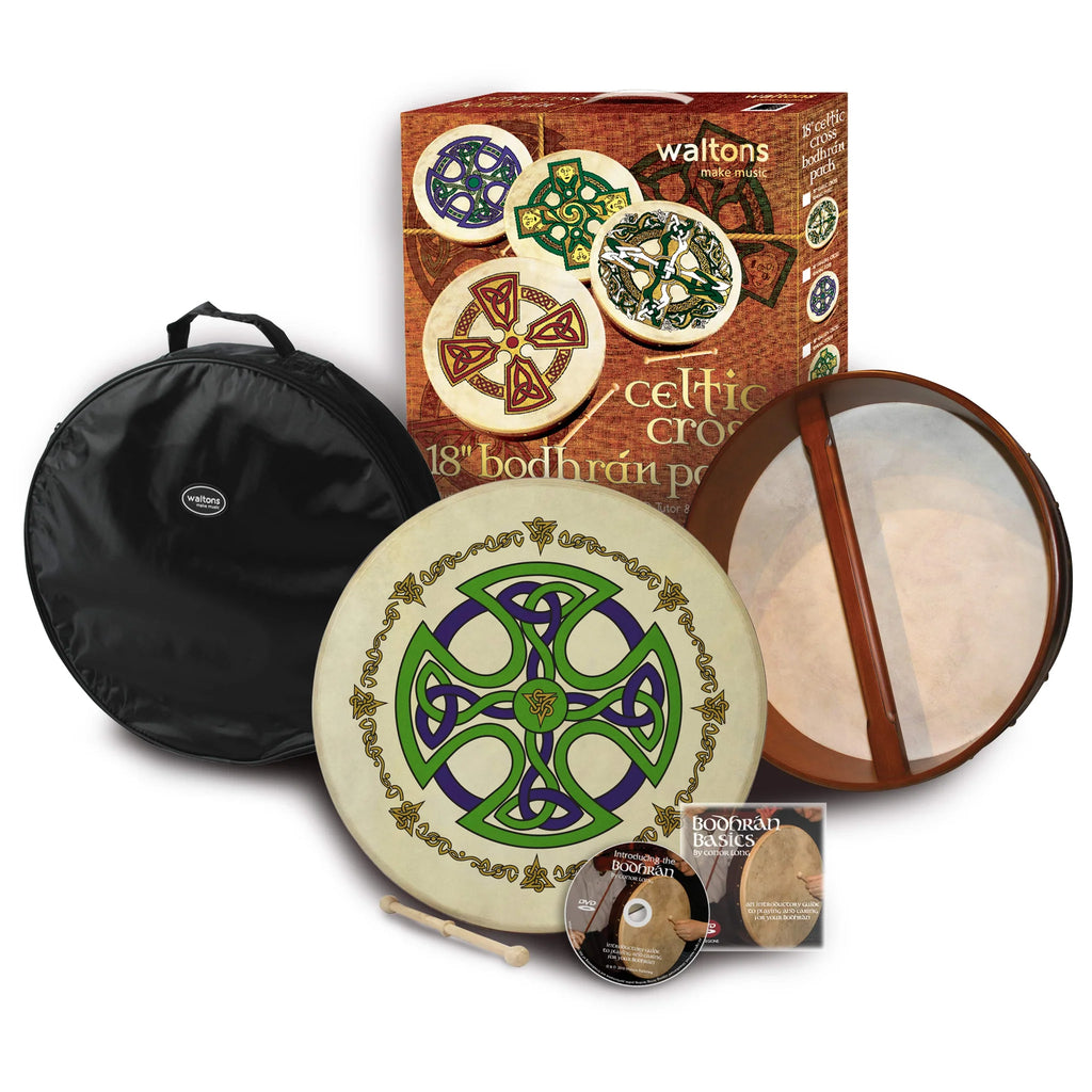 The Waltons 18" Celtic Cross Bodhrán Pack includes: