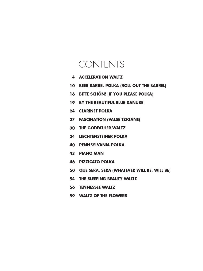 15 familiar polka and waltz tunes arranged in a classical style for easy piano by Phillip Keveren.