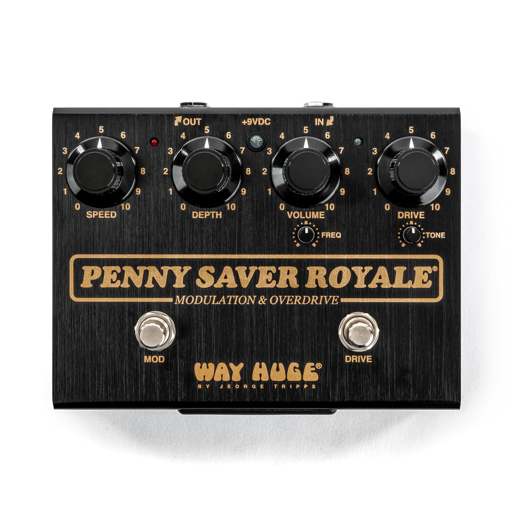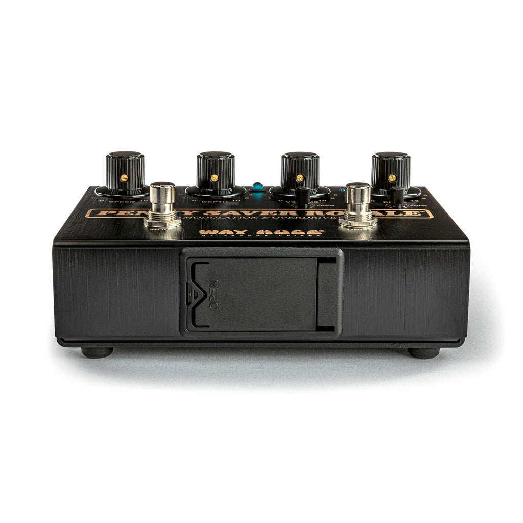The Way Huge Penny Saver Royale Modulation & Overdrive brings together Joe’s most cherished tones in a single enclosure. On one side, you get the punch, grit, and flexibility of the Overrated Special™ Overdrive. On the other, the lush shimmer of the Blue Hippo™ Chorus in its signature mode—custom-voiced with a delay time tailored to Joe’s preference. Use each effect on its own, or blend them to unleash thick, swirling textures as overdrive cascades into modulation. With its surge of gain, sustain, and liquid movement, this pedal is primed to deliver Joe’s hypnotic sound—or help you craft your own.