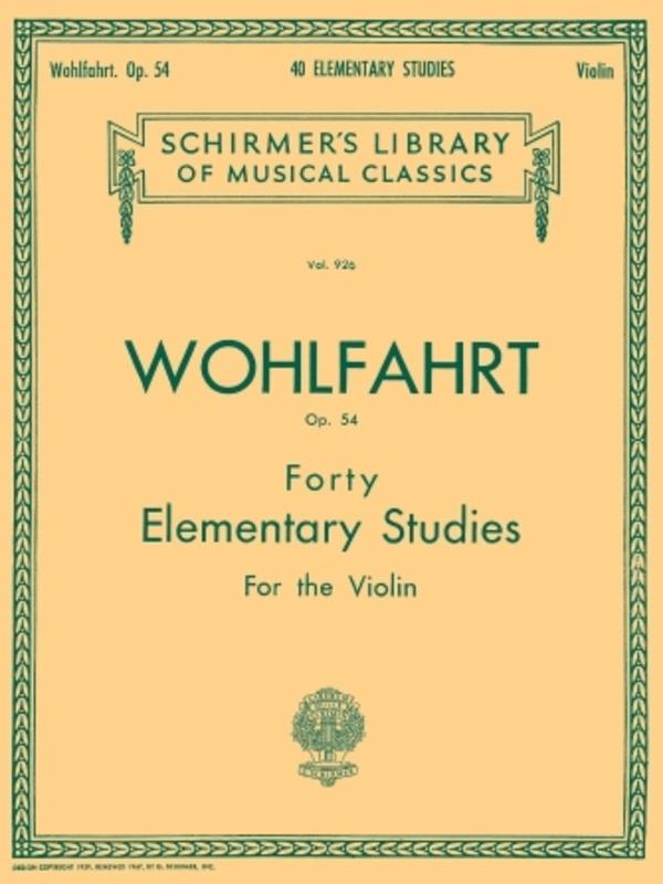 Wohlfahrt's 40 Elementary Studies, Op. 54, focuses on the basics of violin-playing, like finger patterns, intonation, tone, and bow distribution. In addition, these first-position exercises are intended to develop different basic bow strokes, like staccato and martele; and develop speed and agility in the left hand.