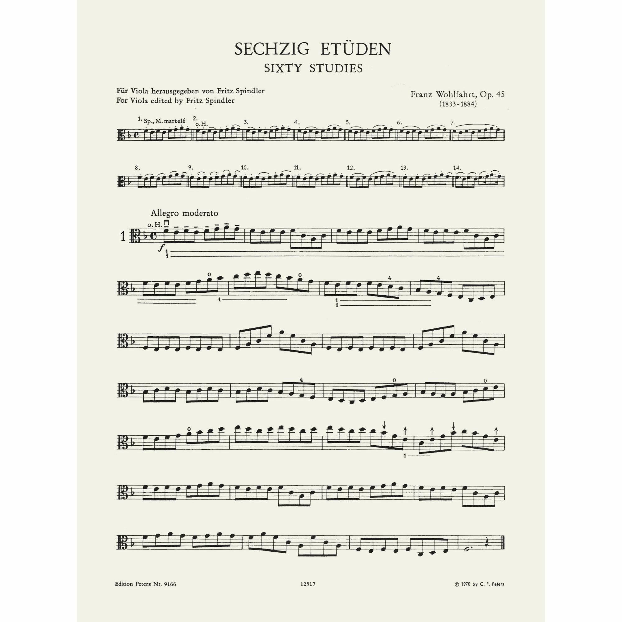 The complete set of Wohlfahrt's 60 violin studies has been artfully arranged for viola by Fritz Spindler for Edition Peters.