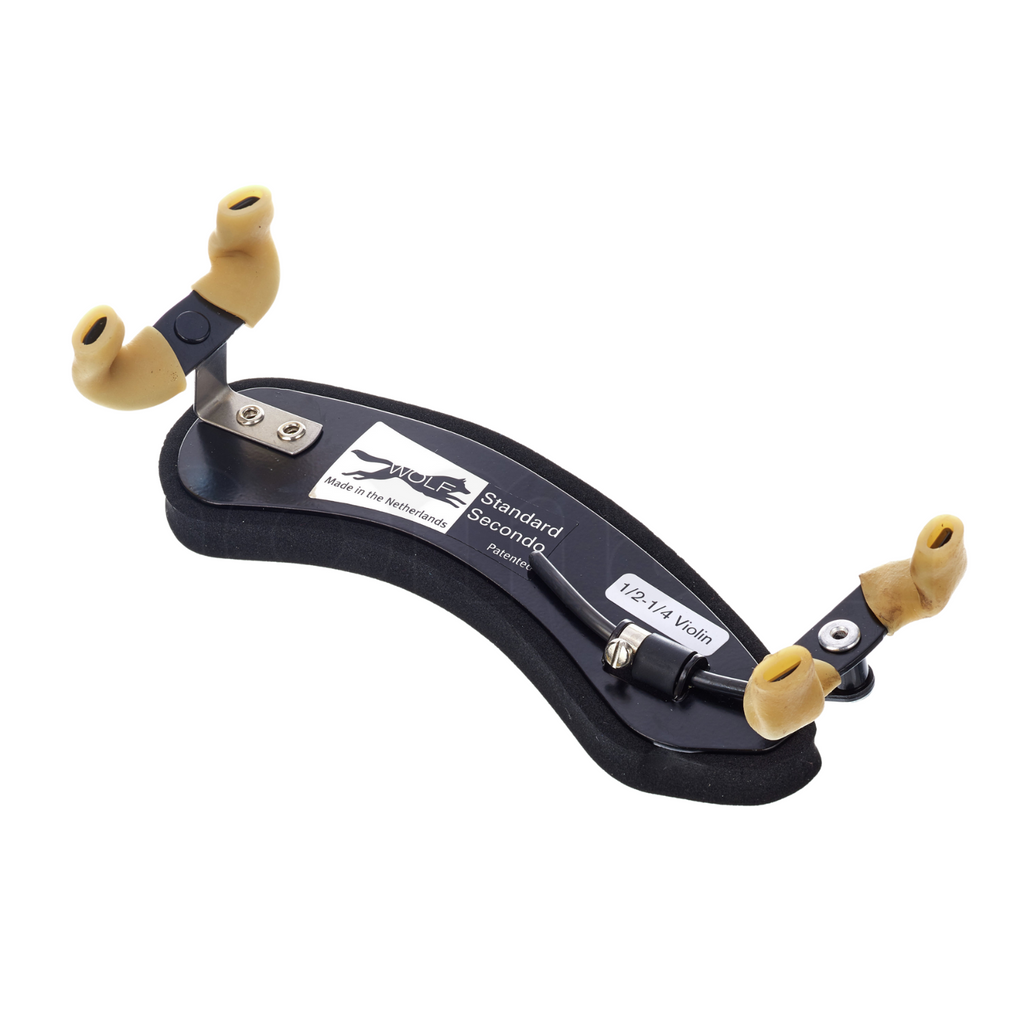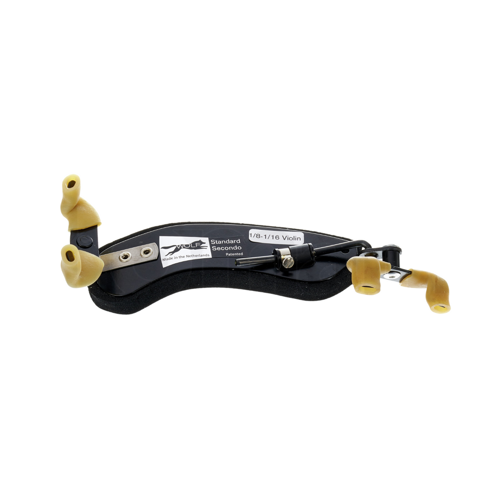 The main part of the Wolf Standard Secondo shoulder rest is made of comfortable rubber, on top of that the aluminum plating which makes it possible for the player to shape the rest to their own shape and allowing them to play with their own ergonomics. Delivered with this rest are two plastic spacing tubes which allow the arms to be stable when put into the highest position.