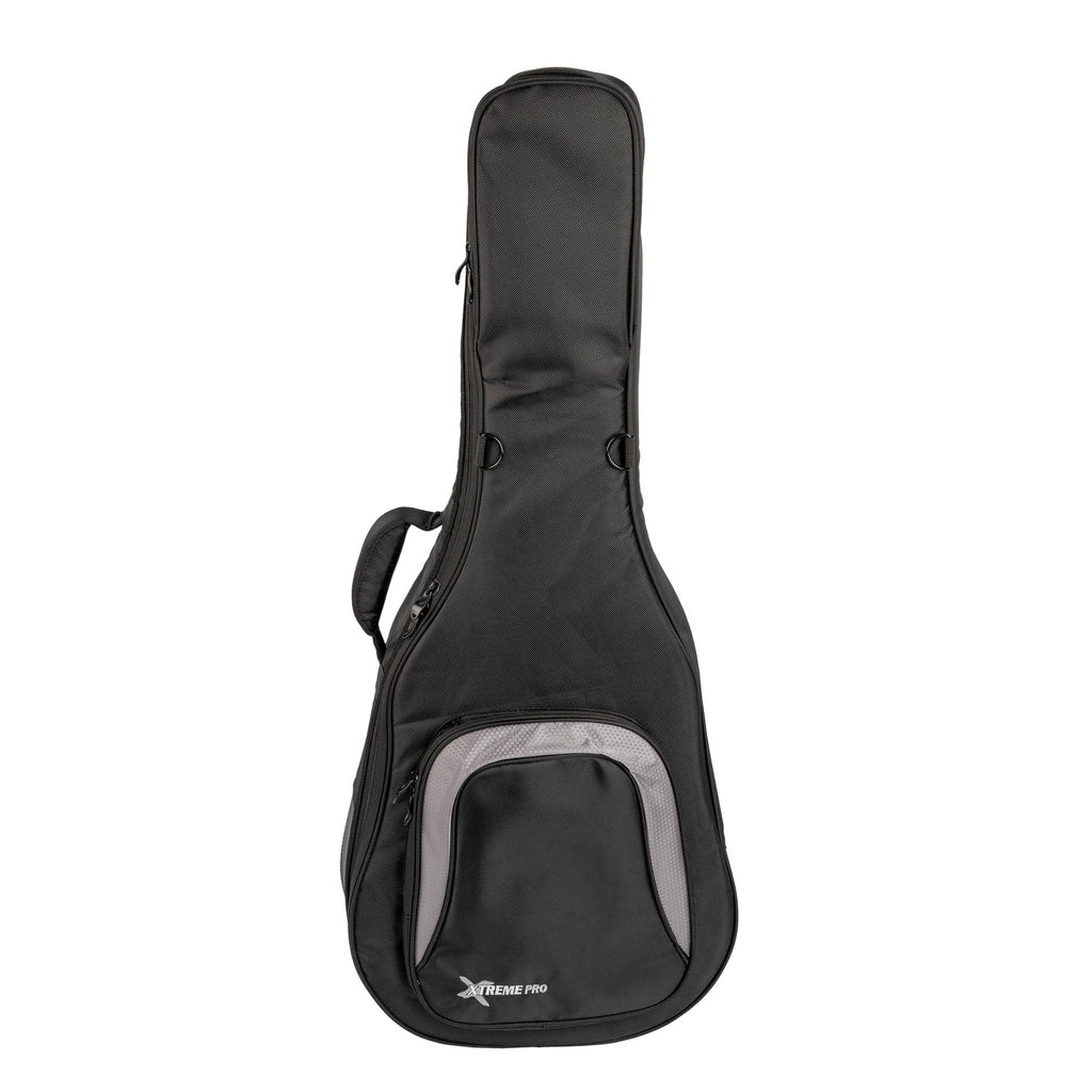 Introducing XTREME PRO Premium Deluxe Series gig bags – the unbeatable protection and style for guitarists on the move. With a semi-rigid construction and weather-resistant 1680D nylon exterior, these bags redefine instrument security. The plush-lined interior, removable neck support, and plentiful accessory storage pockets ensure your guitar remains protected and your essential accessories are within easy reach. Comfortable transport is guaranteed with a reinforced padded carry handle and hideaway backpack straps. The heavy-duty design, full length toggled zips, and signature Xtreme style make these gig bags the perfect choice for musicians who demand the best. Secure your journey with the XTREME PRO Premium Deluxe Series.
