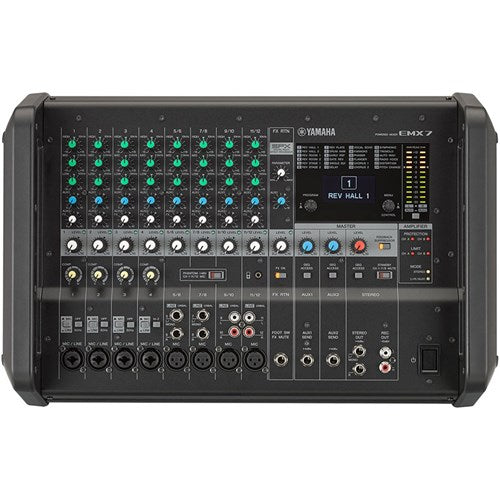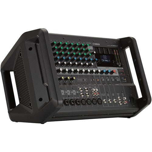 Enjoy premium sound quality and convenient features with this Yamaha EMX7 12-channel mixer. Featuring a built-in high-efficiency power amplifier, this robust mixer provides 710 watts of power via each unit, ensuring your message or music comes across loud and clear. The compact design with carry handles makes this mixer simple to take along to shows or lectures, and the durable impact-resistant build holds up well during transport.