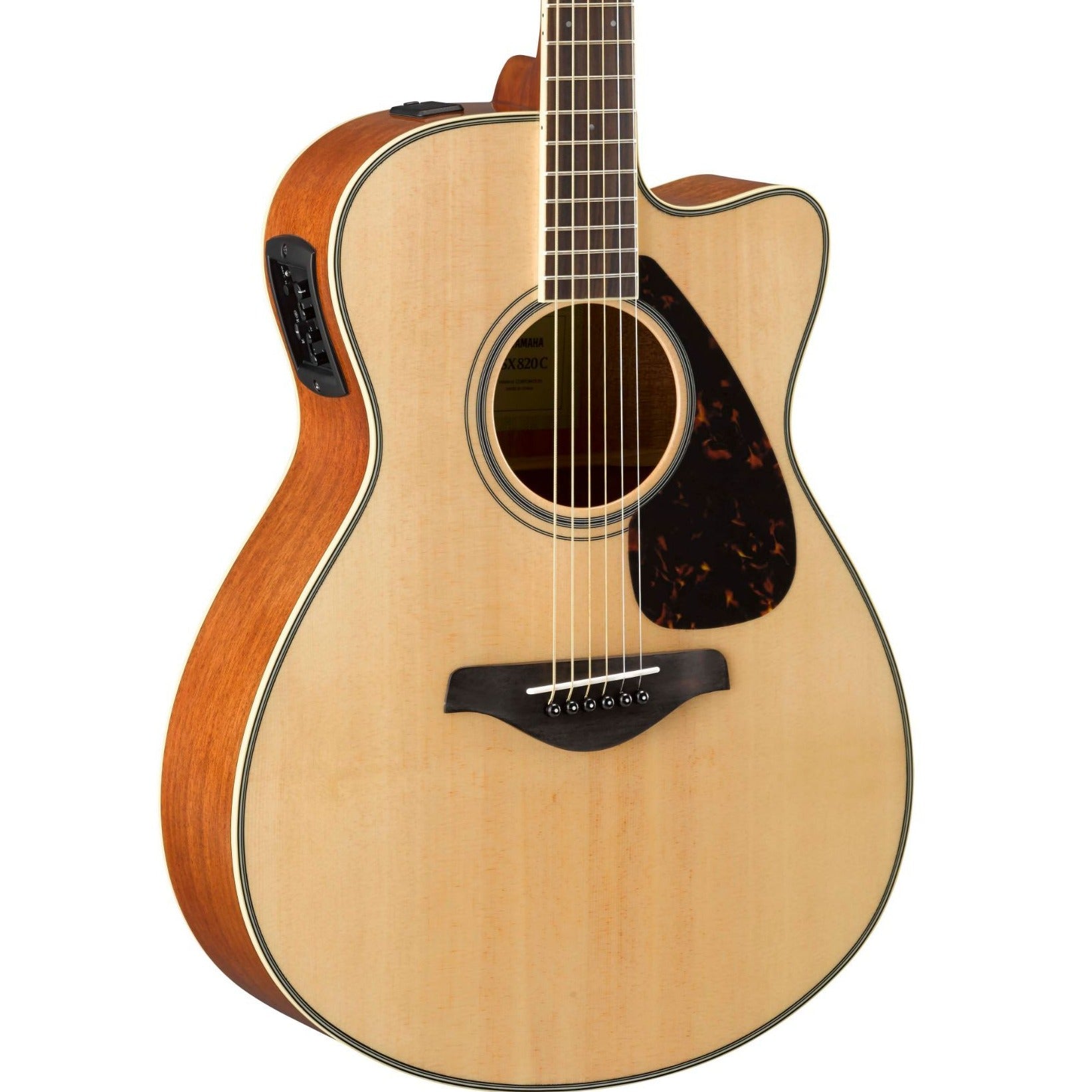 Derived from FS820 which has the solid spruce top and mahogany back/sides, FSX820C has a cutaway body and the electric system. Yamaha's proprietary under-saddle piezo pickup and System66 analog preamp ensure the solid plugged-in performance. The small and thin body is perfect not only for female/young players but for intermediate to upper level finger-picking style players.